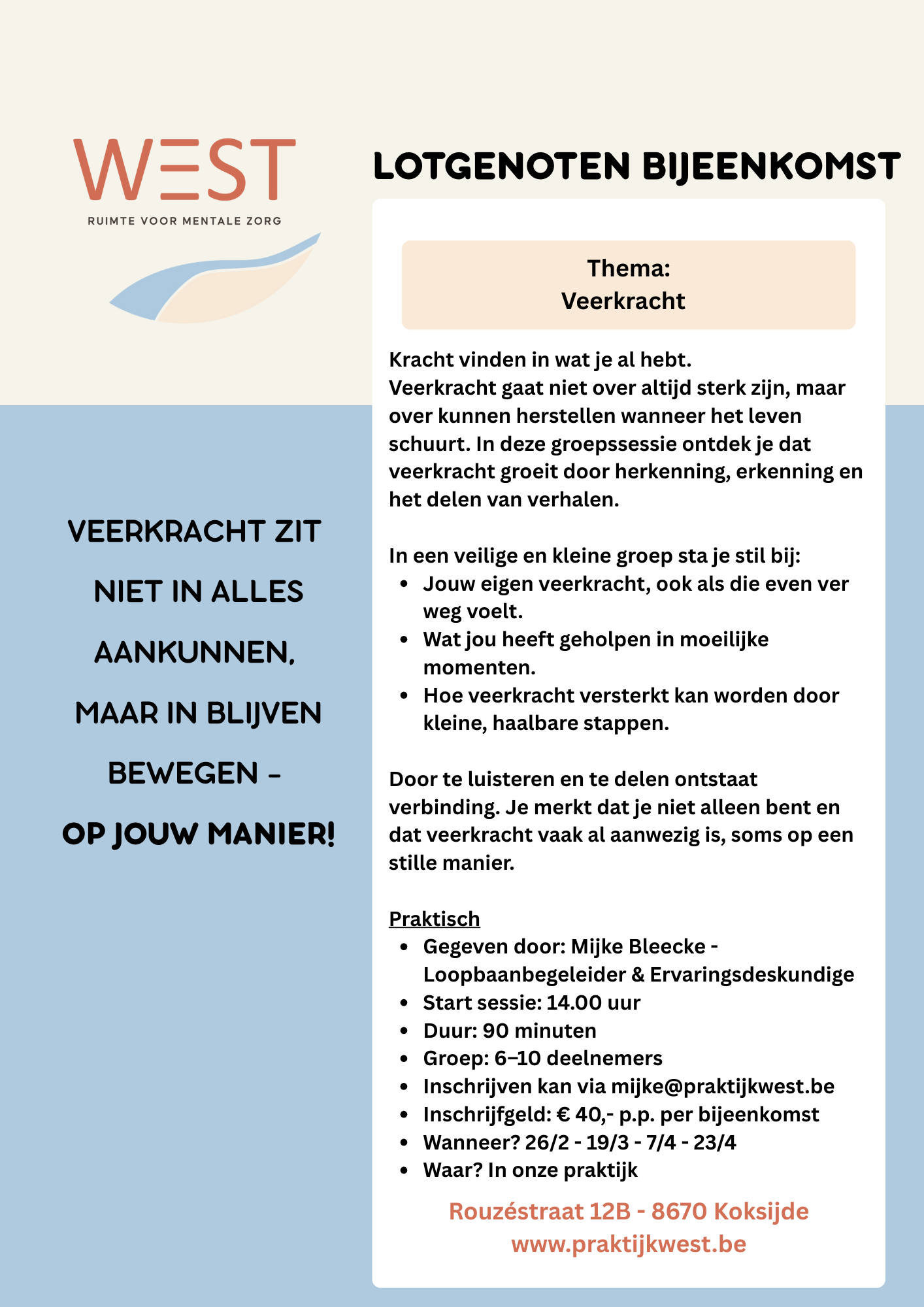 Inschrijven kan via mijke@praktijkwest.be